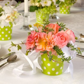 Velik cvet v stekleni vazici je minimalističen a učinkovit okras poročnega omizja.