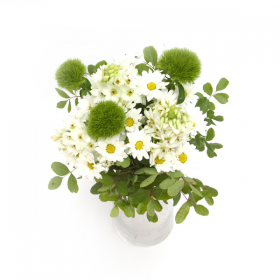 Trudimo se, da vedno dobite aranžma, kot je prikazan na sliki. Včasih glede na letni čas posamezno cvetje ni na voljo. Če pride do tega, vas bomo o tem vnaprej obvestili in ponudili ustrezno zamenjavo enake kakovosti in vrednosti.